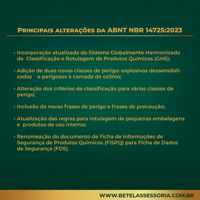 No dia 03 de julho de 2023, a norma ABNT NBR 14725 passou por uma atualização significativa no Brasil, incorporando as diretrizes revisadas da 7ª edição do Purple Book-GHS da ONU.