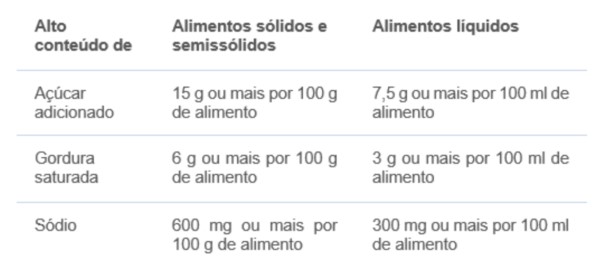 É obrigatória a veiculação do símbolo de lupa com indicação de um ou mais nutrientes, conforme o caso, quando os alimentos apresentarem as seguintes quantidades de nutrientes: